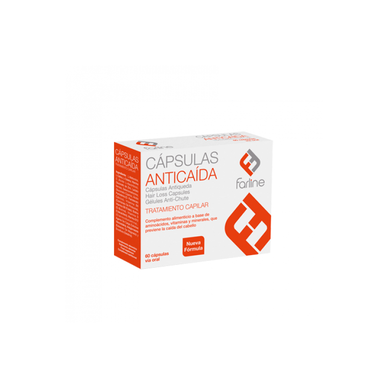 Las capsulas anticaida Farline es un tratamiento anticaida indicado tanto para hombres como para mujeres, formulado a base de aminoacidos, vitaminas y minerales, que previene la caida del cabello y a su vez contribuye a fortalecer las uñas y cuidar nuestra piel.
