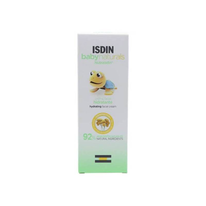 Isdin Babynaturals Crema Facial Hidratante 50ml es una loción específica para bebés formulada a partir de ingredientes de origen natural. Su composición favorece la hidratación y protección de la piel de los más pequeños, incluidos recién nacidos, favoreciendo su fácil extensión y otorgando una piel sedosa y flexible que respeta la barrera natural de la piel del pequeño.