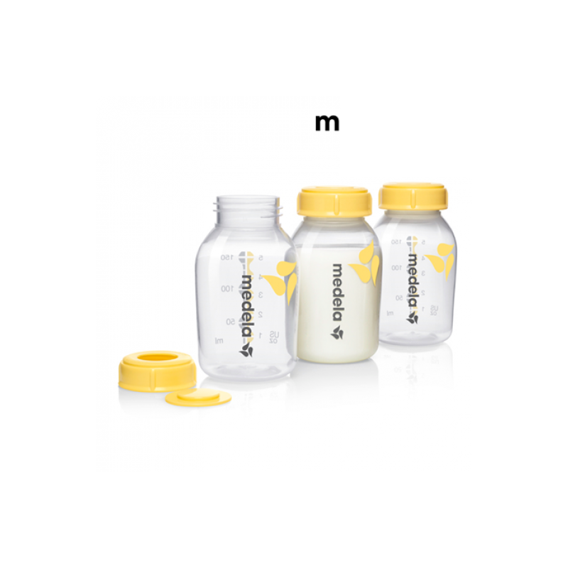 Pack de 3 Unidades de Botellas Biberon 150ML. Las botellas de Medela para leche materna (disponibles en 2 tamaños) se fabrican, y siempre se ha hecho así, con materiales que no contienen Bisfenol-A. Además te permiten extraer directamente desde el extractor, ahorrando tiempo, espacio y sin perder ninguna gota. La leche materna es importante para el desarrollo de tu bebé. La manipulación cuidadosa de leche materna es muy importante para salud de tu bebé. Con lo cual, hay que elegir que recipiente utilizar para conservar todos las vitaminas y nutrientes.