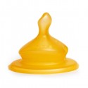Las tetinas First Choice tienen una forma anatómica que simula el pezón de la madre, consiguiendo un patrón de alimentación muy similar al de la lactancia materna. Es natural y se adapta a la forma de la mandíbula ayudando a fortalezar esta junto con los labios, la lengua y el paladar. Su base más ancha permite un mayor confort al pequeño y el Nuk Air System es el sistema anti-cólico ahora renovado para una mayor eficacia.