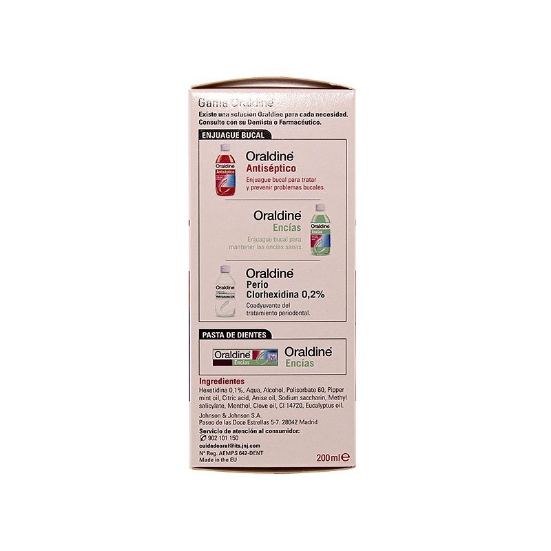 Oraldine antiséptico diario es el enjuague bucal de uso diario que necesitas para mantener tu boca sana. Su principio avtivo, la hexetidina, inhibe el crecimiento de las bacterias evitando la formación de la placa y asegurando una total higiene y desinfección, manteniendo unas encías fuertes y sanas.