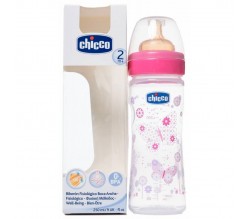 BIBERÓN CHICCO. Boca ancha. Tetina de silicona de flujo normal.